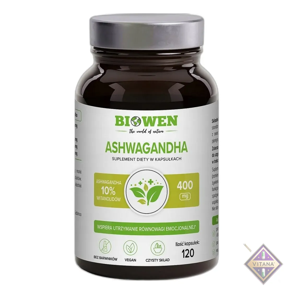 BIOWEN ASHWAGANDHA 10% 400mg 120 kapsułek SEN KORTYZOL STRES UKŁAD NERWOWY
